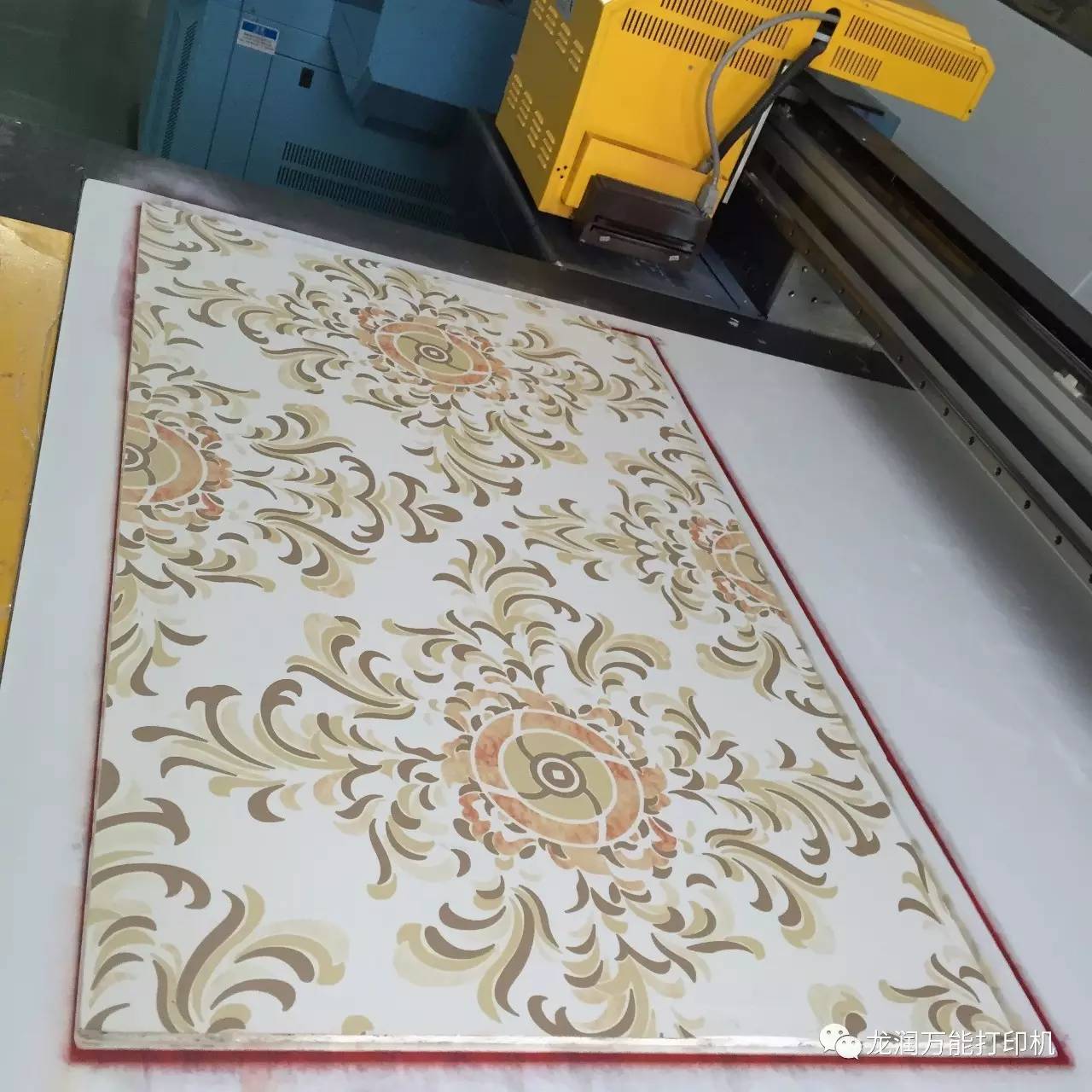 龍潤UV數碼噴印,是指通過計算機控制細墨流,通過噴嘴噴射在板件上,利用紫外光輻射固化UV墨水,從而使圖像呈現在板件上,是一種高科技的免制版全 彩數碼印刷技術。